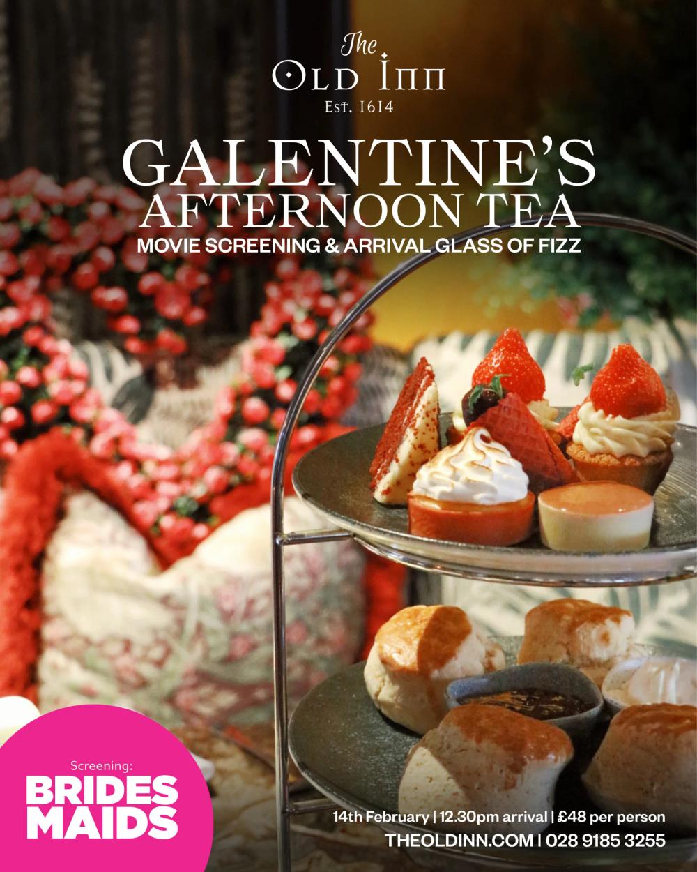 Gather your best pals for a special Galentine's Afternoon Tea at The Old Inn this February 14th. Enjoy a luxurious spread of treats, a glass of fizz, and a private screening of the hit comedy *Bridesmaids*. It's the perfect way to celebrate your most cherished friendships in style.