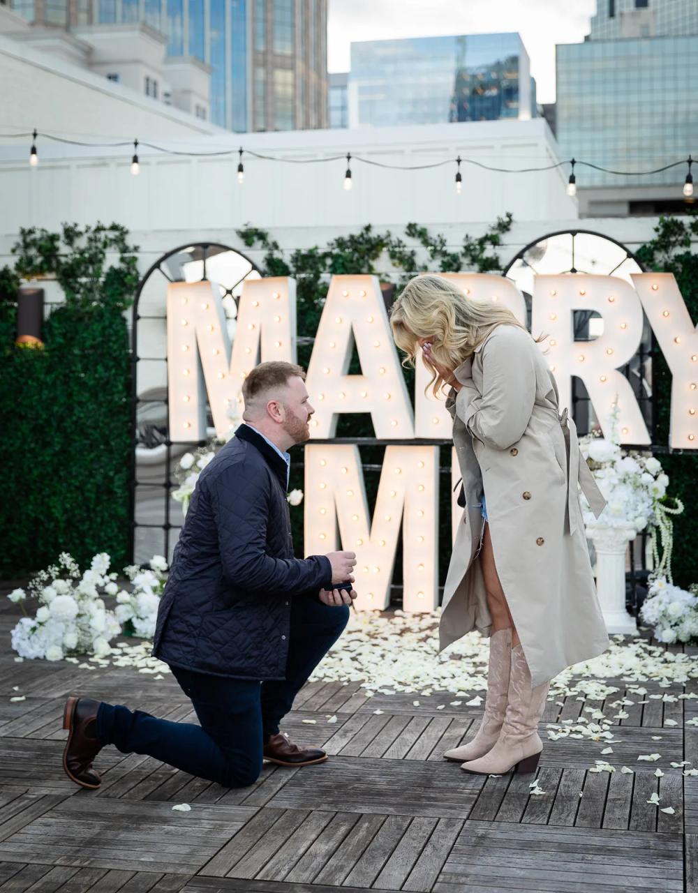 Emma and Ben’s journey began in 2017 at an unconventional Christmas work night out. "For me, it was love at first sight," Ben recalled with a laugh, "Emma took a little more convincing." They officially became a couple in 2023, and Ben popped the question during a long-awaited trip to Nashville and Las Vegas – a dream for the avid country music fans. Despite a frantic dash back to the hotel for the forgotten ring, the proposal was unforgettable, meticulously planned with a local coordinator. Emma was completely surprised to arrive at what she thought was a theatre show, only to see giant rooftop marquee letters spelling out 'Marry Me'.
